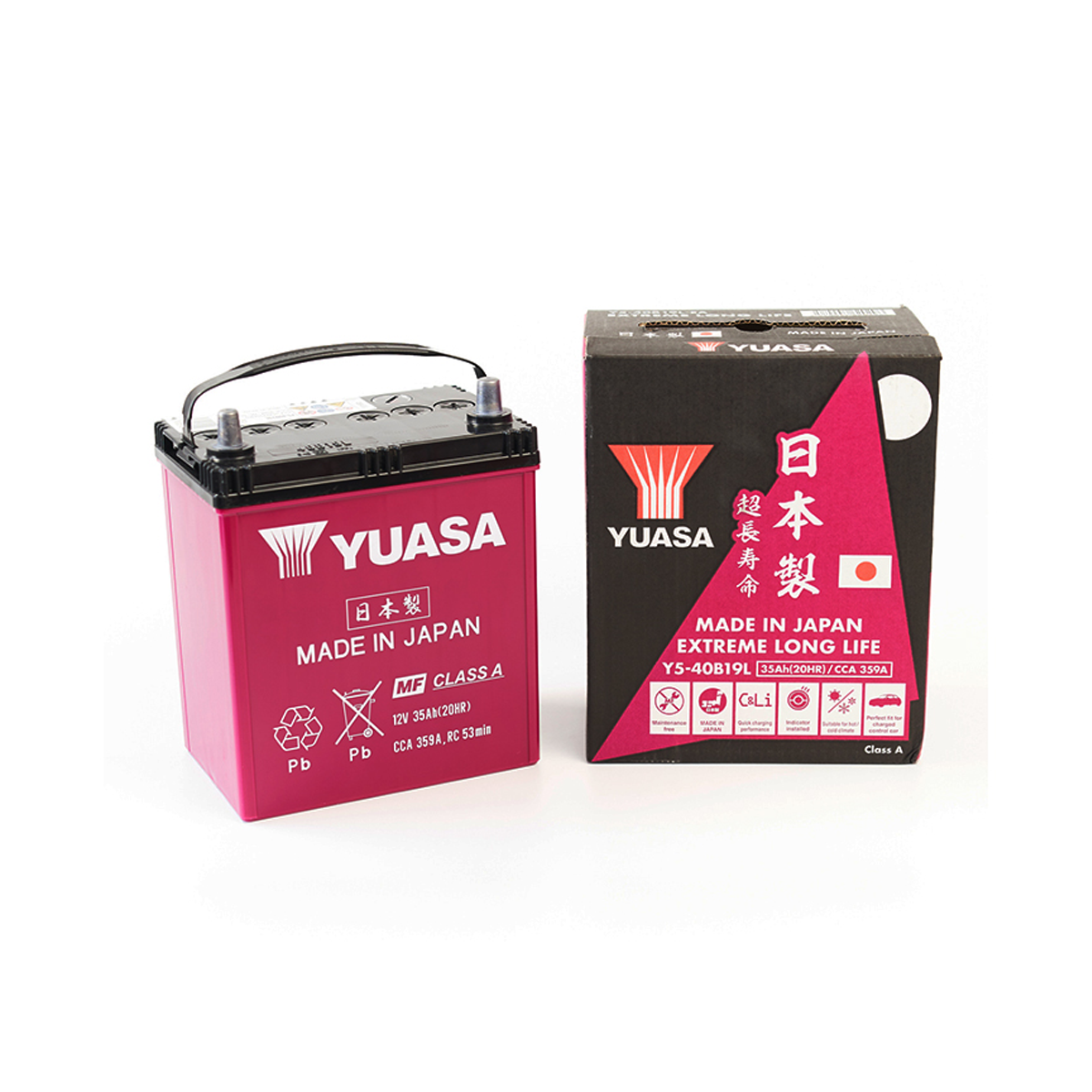 La batería de auto YUASA 40B19L con 35AH y 359 CCA es una batería libre de mantención de excelente calidad. Esta batería para vehículo es fabricada en japón con la tecnología más avanzada del mundo. Contiene LITIO dentro de sus componentes lo cual le permite una larga duración. YUASA 40B19L es la batería de auto ideal para vehículos como Suzuki Alto, Honda Fit, Honda City entre otros. Su rendimiento es extraordinario, permite un 130% en aceptación de carga, un 130% de durabilidad bajo altas temperaturas y un 200% de resistencia contra la sulfatación otorgándole una EXTREMA LARGA VIDA.
