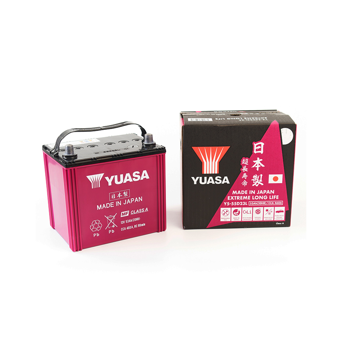 La batería de auto YUASA 55D23L con 53AH y 460 CCA es una batería libre de mantención de excelente calidad. Esta batería para vehículo es fabricada en japón con la tecnología más avanzada del mundo. Contiene LITIO dentro de sus componentes lo cual le permite una larga duración. YUASA 55D23L es la batería de auto ideal para vehículos como Subaru Impreza, Subaru Forester, Toyota RAV 4 entre otros. Su rendimiento es extraordinario, permite un 130% en aceptación de carga, un 130% de durabilidad bajo altas temperaturas y un 200% de resistencia contra la sulfatación otorgándole una EXTREMA LARGA VIDA.